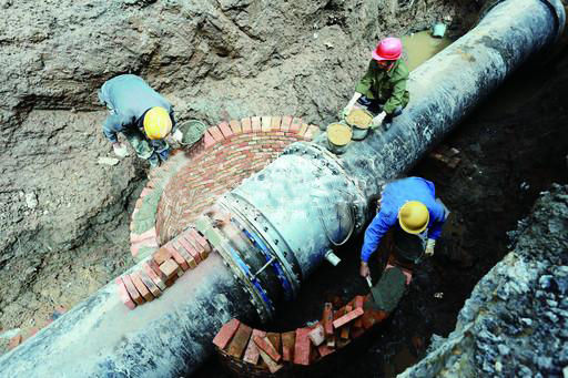 由于河南省內連日大雨,導致商丘永城市自來水管網的橡膠接頭水壓過大崩裂,近日,由新躍供水生產的不銹鋼橡膠軟接頭運往永城,實施安裝。